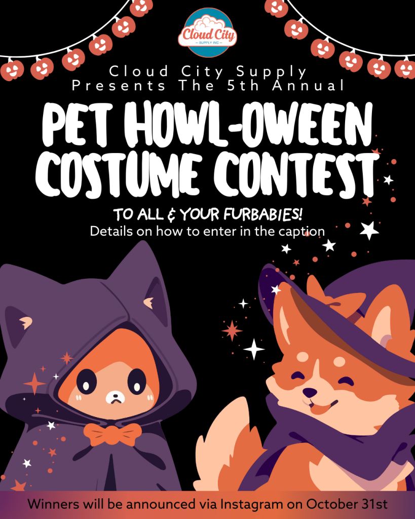 Winners Announced: We’ll reveal the winners on October 31st on Instagram @cloudcitysupplyinc